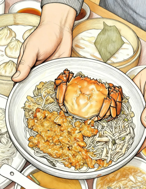 吃蟹,是與秋天的一場鄭重告別,那一刻,蟹鉗的脆響,姜醋的微酸,蟹黃的豐腴,都成了秋天最后的回響。吃蟹,吃的何止是鮮?是節氣的流轉,是文人的風雅,是廚子的耐心,更是中國人對“應時而食”的古老信仰。