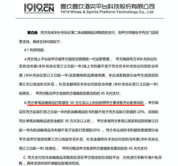 隨著酒業(yè)深度調(diào)整,哪怕是茅臺(tái),也不敢對(duì)經(jīng)銷商保證,銷售茅臺(tái)酒能夠獲得30%的毛利。其實(shí),30%毛利的加盟承諾容易流失掉專業(yè)的酒類從業(yè)者,有很大概率吸引到經(jīng)驗(yàn)不豐富的跨行從業(yè)者。后者抵抗風(fēng)險(xiǎn)能力差,在行業(yè)下行時(shí)更難以獨(dú)自生存,而總部沒有用文字明確詳細(xì)的合作條文,會(huì)提高其生存難度。